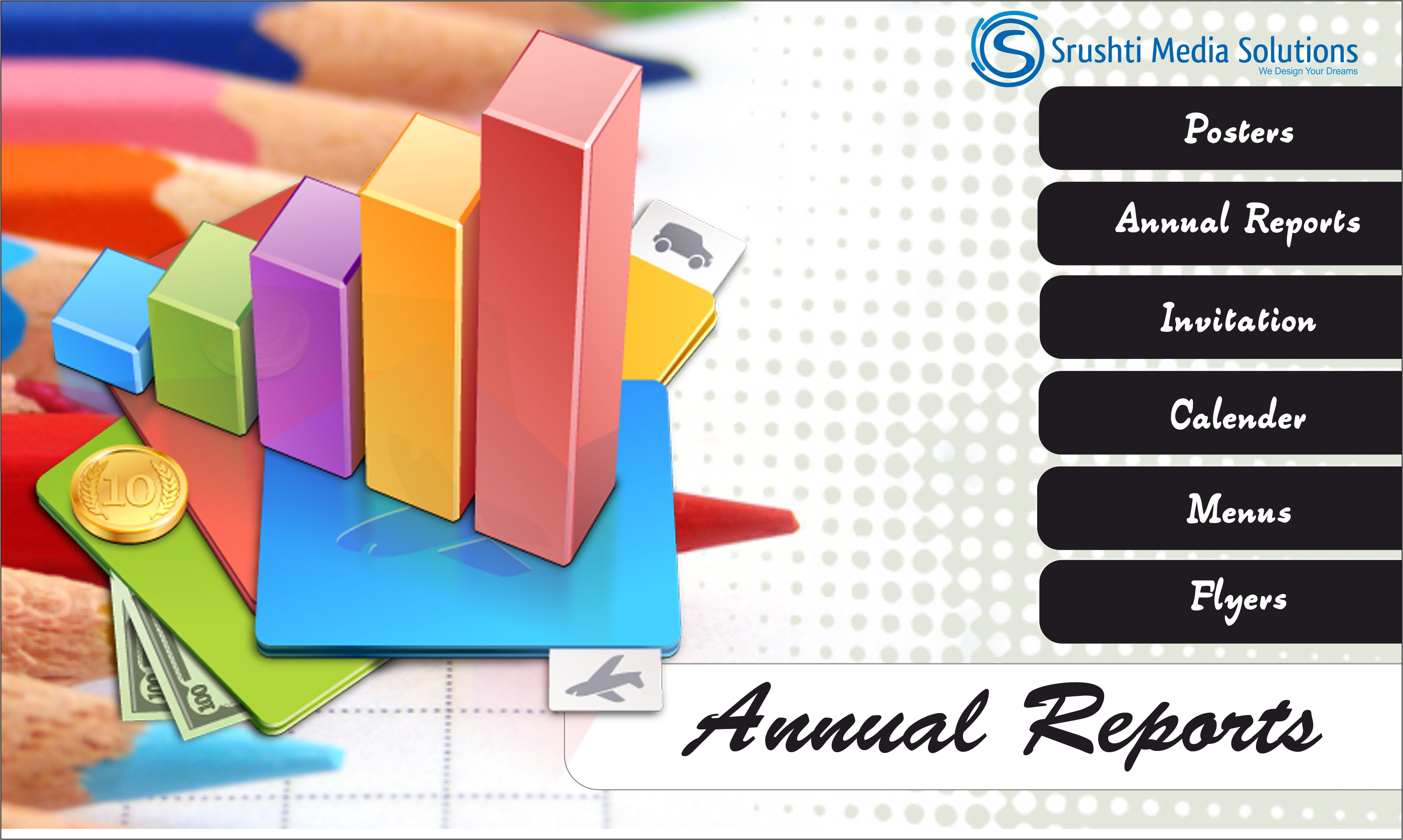 Add glitter and sparkle your meetings with Annual reports designed by Srushti Media Solutions. Give a new dimension to the way you project your business ideas, research studies or even product demonstrations. Annual Reports no longer need to be a spiralling booklet containing bland pictures, ambiguous technical words and colourless identity. At Srushti Media Solutions, we generate Annual Reports that can set you apart. Colourful statistical representations with use of boxed information are hard to project unless done by an expert designer. We will type-set the Annual Reports for you with inspiring thoughts, meaningful case studies and recent developments in the market.